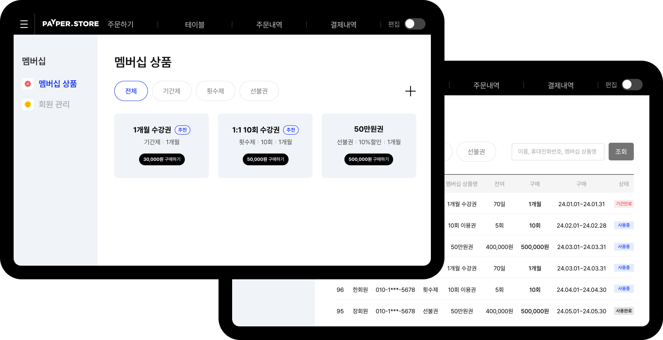 매장 운영에 꼭 필요한 필수 기능부터페이퍼스토어만의 특별한 서비스까지